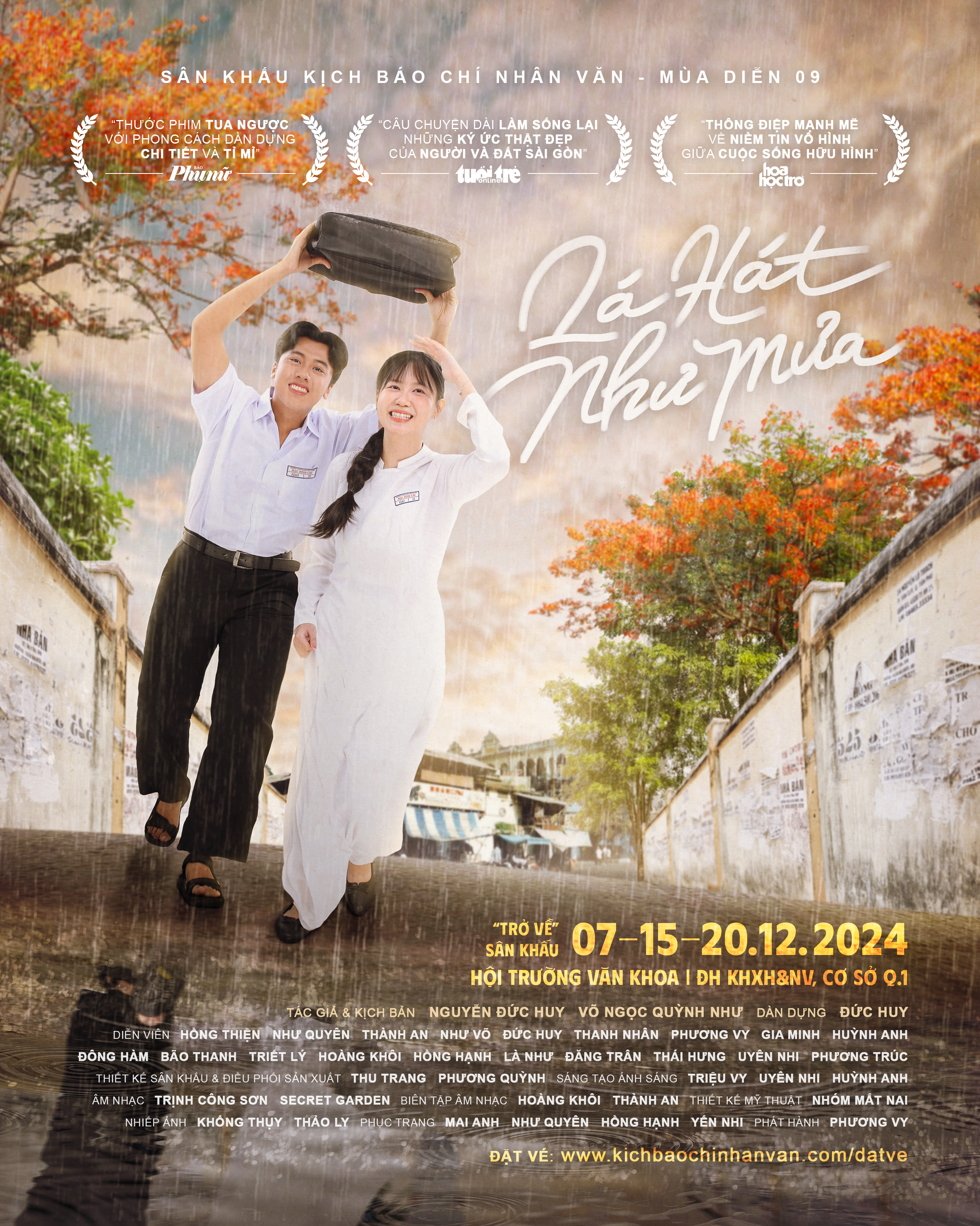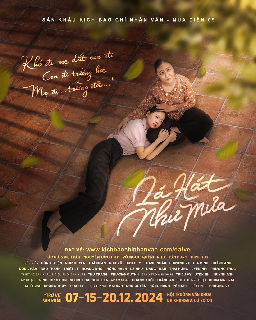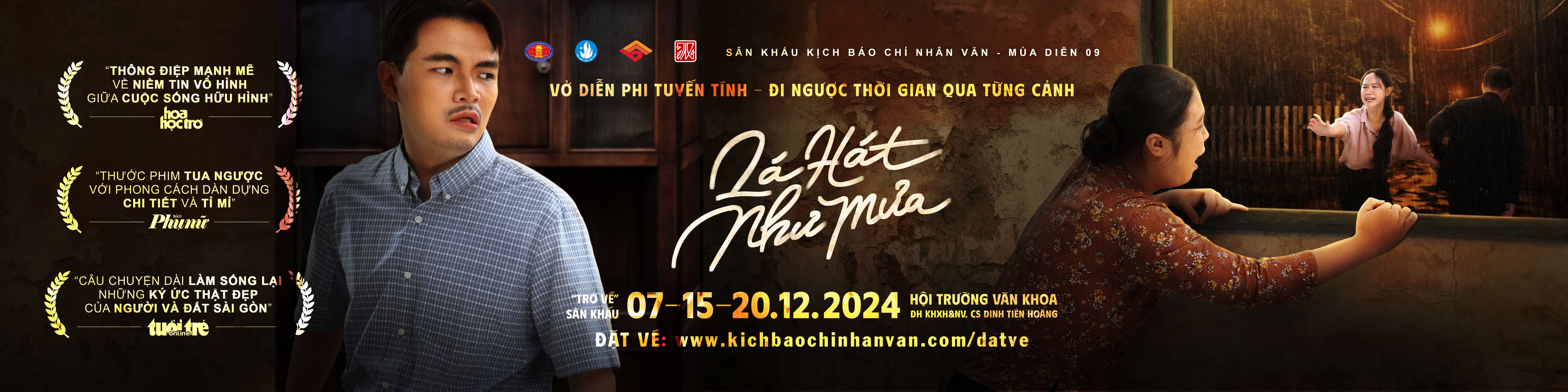 Sân Khấu Kịch Báo Chí Nhân Văn thương mời quý khán giả cùng đến thưởng thức vở diễn phi tuyến tính Lá Hát Như Mưa – ngược dòng thời gian qua từng cảnh – để cùng tìm lại những rung động về một thời yêu dấu đã xa.