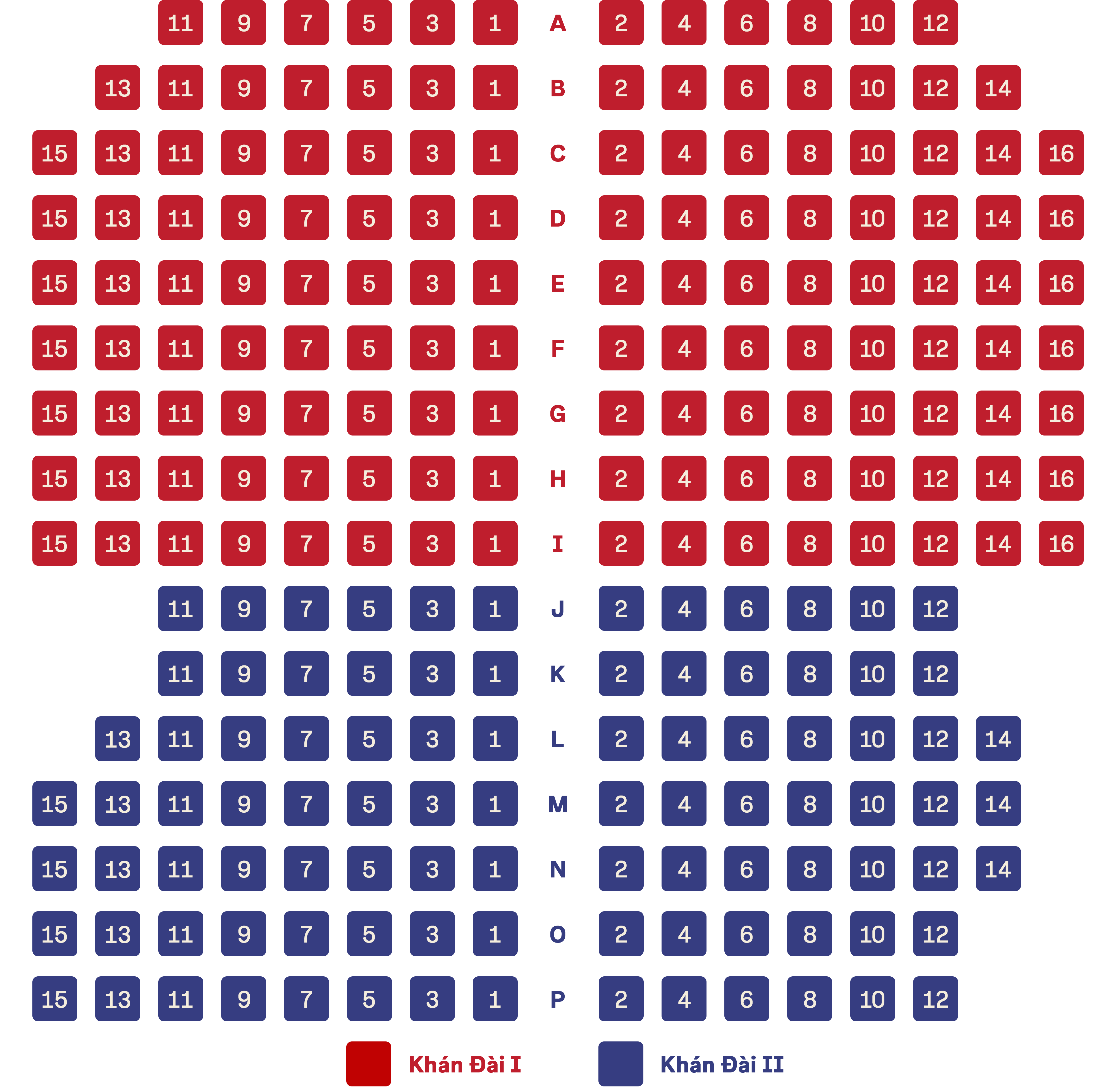 (Khán Đài II: Hàng K đến P)